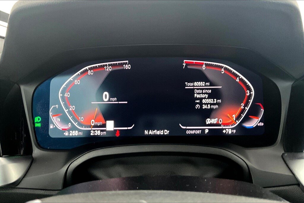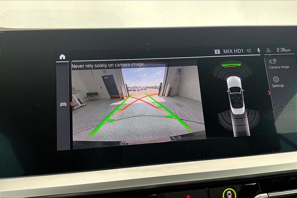 - The vehicle is equipped with a camera that displays an image of the area behind the vehicle on an interior display.